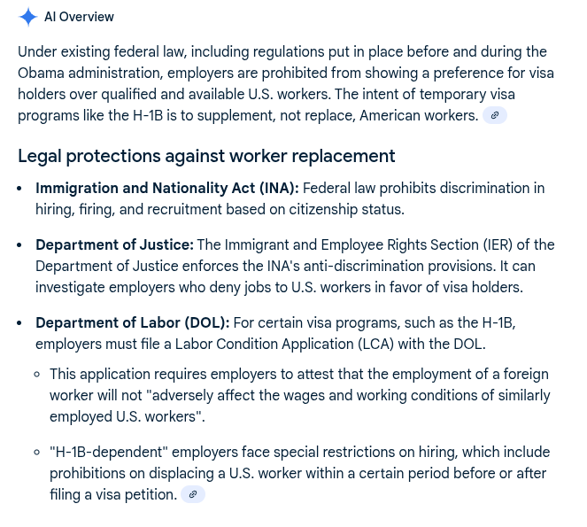 Since nobody should trust Google AI, you can also look things up with American Immigration Council, and the Department of Labor. The DOL link is hilarious because it contains the following: