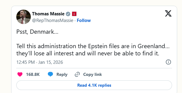 The Epstein files have been hidden behind Greenland for a while, but the money trail leads to Trump and the dragging of feet is only to stall off his criminal prosecution. We need a committee with subpoena power that Trump does not control to watch the videos. When they come to the blackmail video of insert-name-here getting their Statutory Gaetz on with a minor, that’s a Class-X felony.